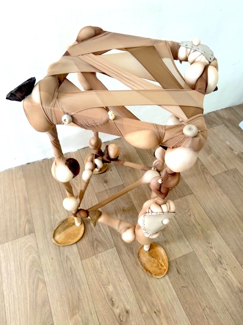 Is an installation that is referring to the twist we find ourselves in sometimes, especially in the role as a woman. It’s about conflicted feelings, unsettled emotions, experiences; about the unique, and often ambivalent relation between emotion and intellect, body and mind, sensory perception and rational understanding The wheel needs to be spinning but an underlying feeling is in conflict with ‘the keeping up the appearance’ also the physical body plays an important role in this all.
